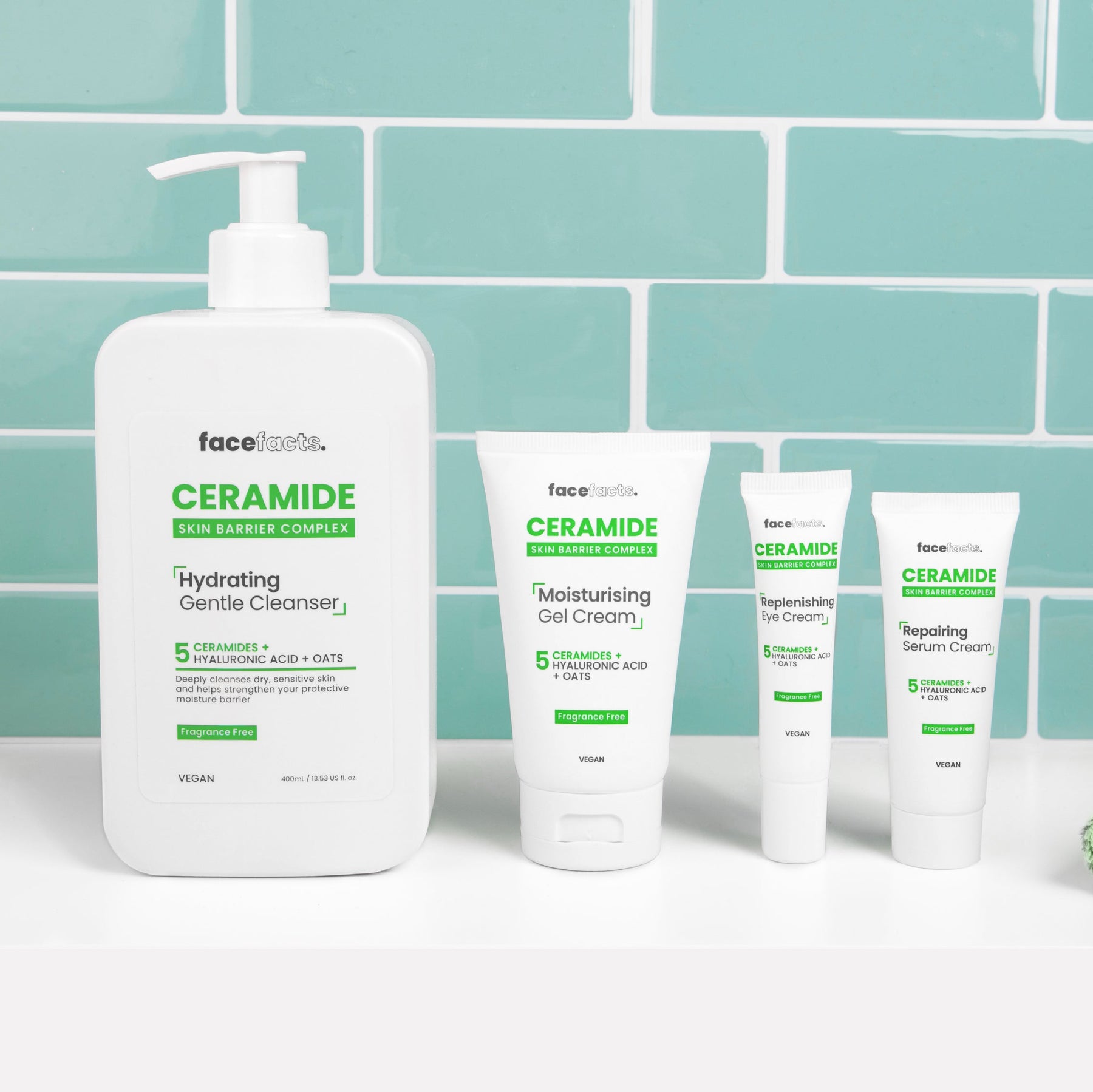 Be kind to your skin with our Ceramide Gel Cleanser. Our hydrating gel helps deeply cleanse even the most dry and sensitive skin. Infused with our skin barrier complex of 5 Ceramides, moisture-locking hyaluronic acid, hydrating glycerin and skin soothing oats, it washes away impurities and makeup, leaving skin clean and hydrated, whilst helping strengthen your protective skin barrier. Give your skin the extra care it deserves!