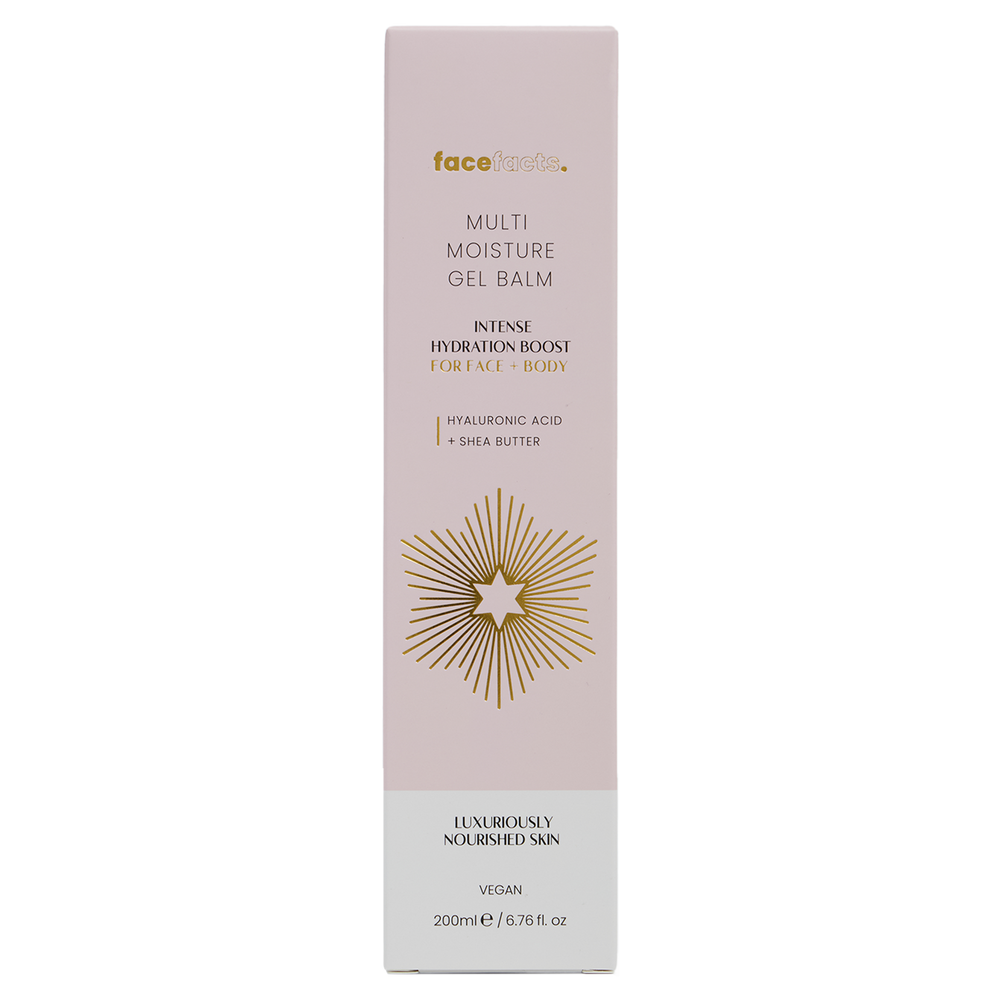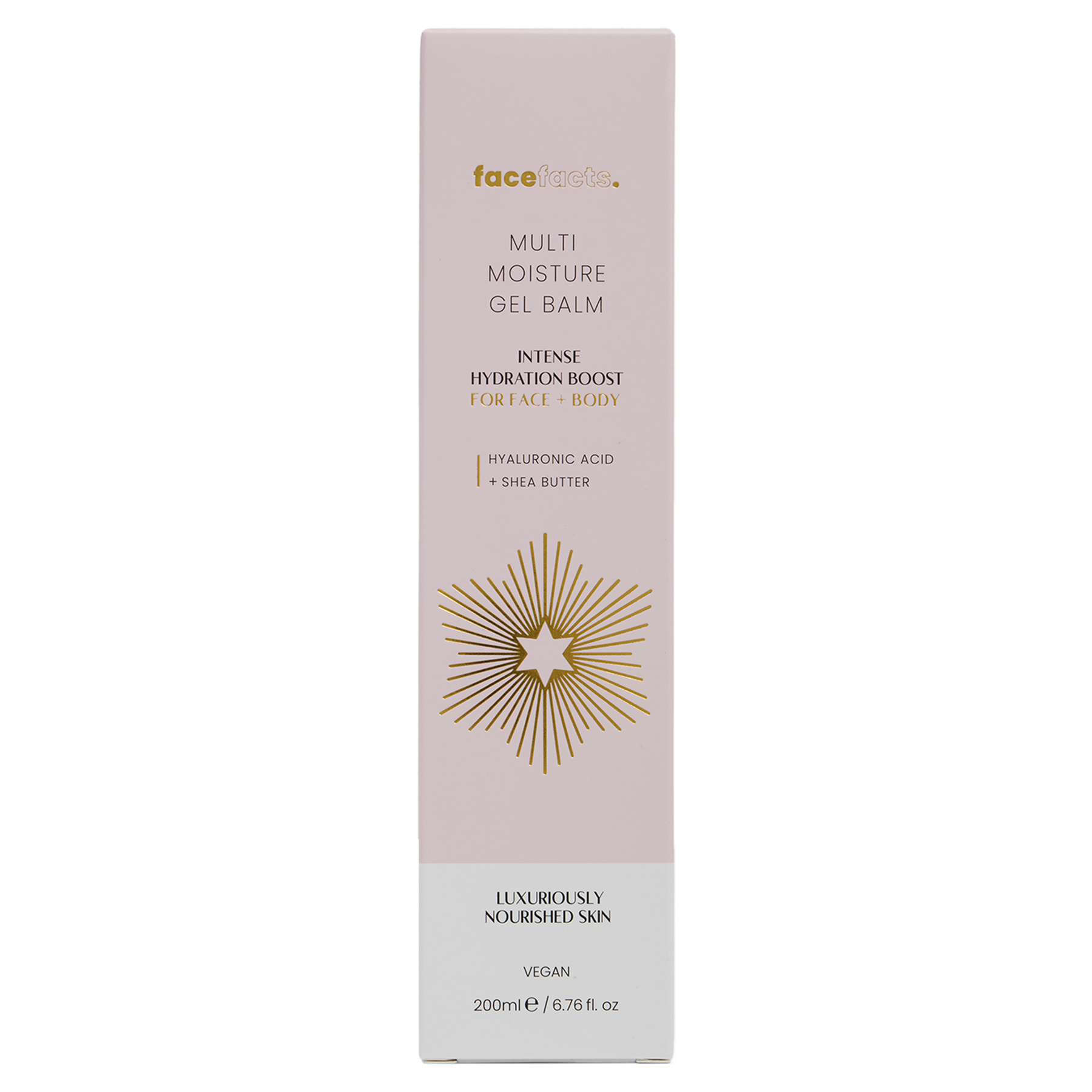 Indulge in luxuriously nourished skin with our face and body Multi Moisture Gel Balm. Infused with a blend of moisturising and hydrating actives; shea butter, hyaluronic acid, allantoin, and vitamin E, it provides an intense hydration boost to skin leaving a subtle glowy sheen with a sweet aroma.