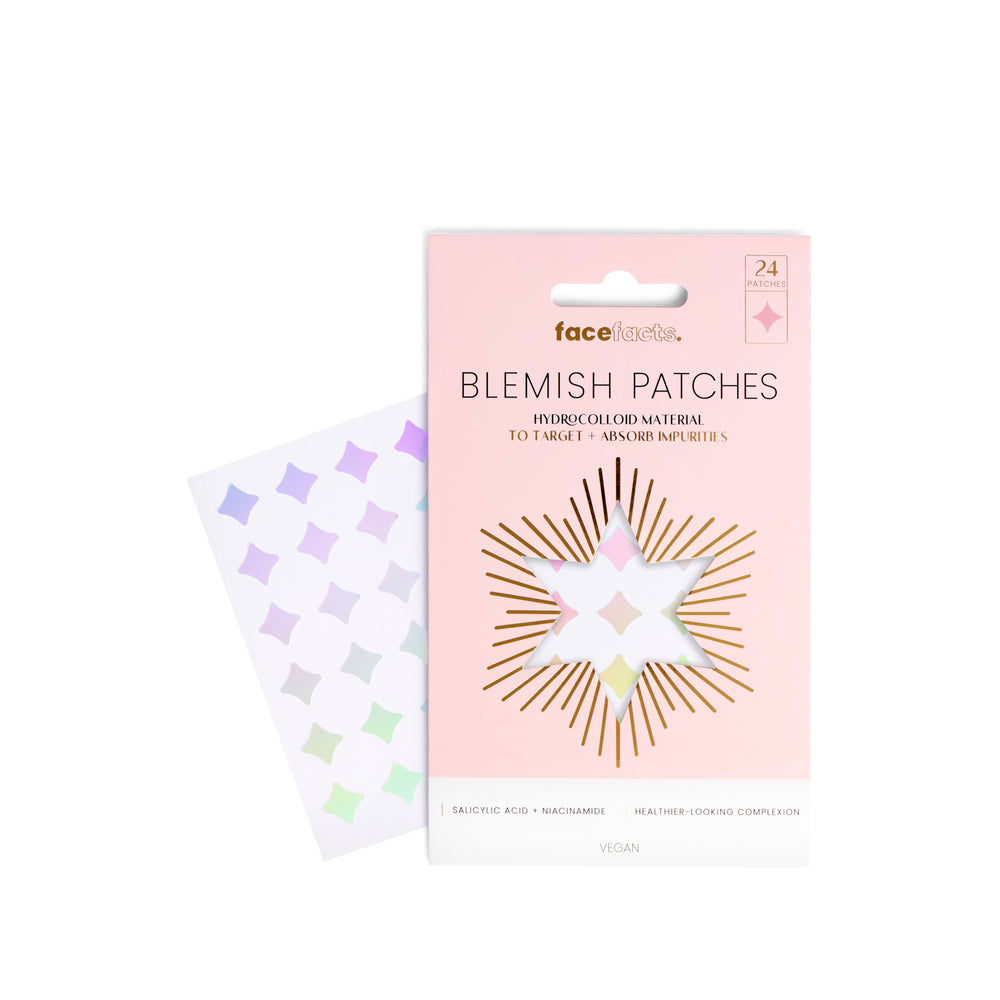 Our Hydrocolloid Blemish Patches are formulated with salicylic acid, hyaluronic acid, and niacinamide to target blemishes by absorbing impurities and protecting against external aggressors, while improving the skin's natural barrier. Our holographic diamond-shaped patches prevent spot-picking, helping to reduce the risk of scarring and promote healthier-looking, smoother skin.
