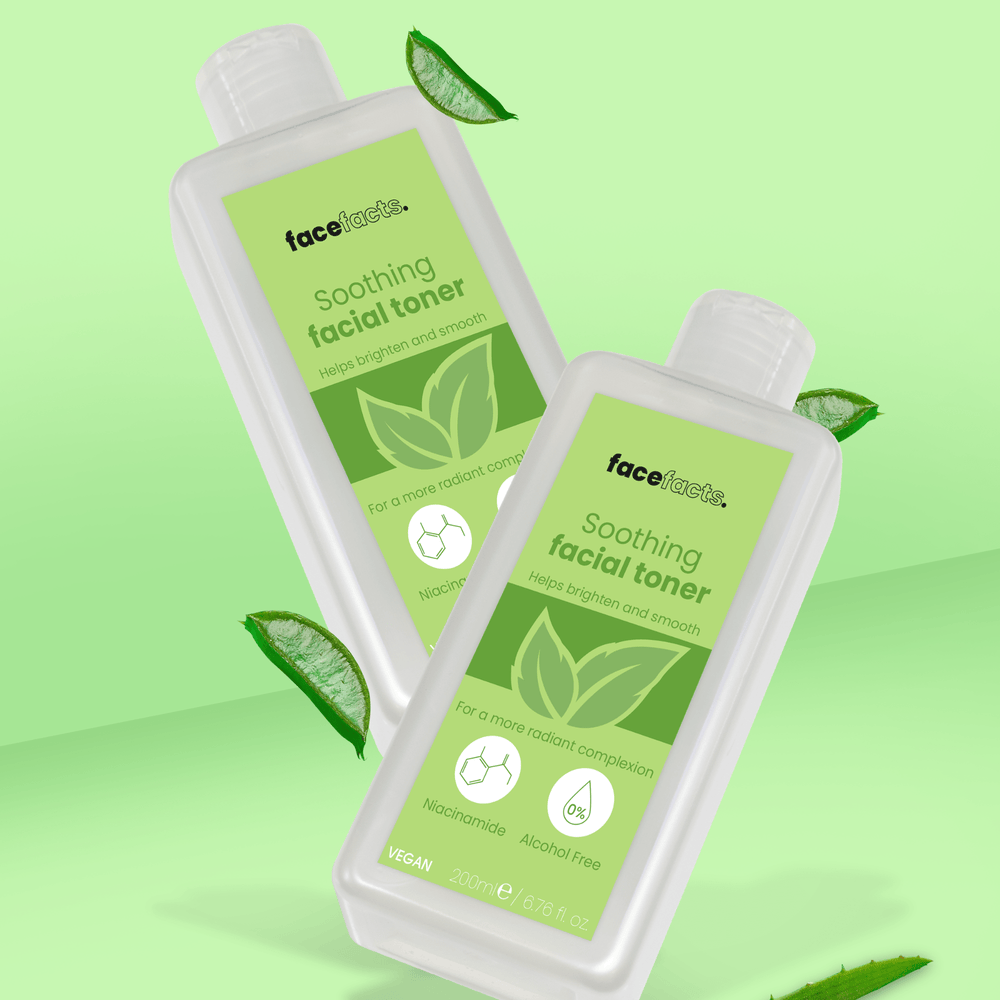 Smooth and brighten your skin without stripping essential moisture with our Soothing Facial Toner. Infused with calming chamomile, soothing aloe vera, and honeysuckle, it helps tighten and refine enlarged pores for a radiant complexion.