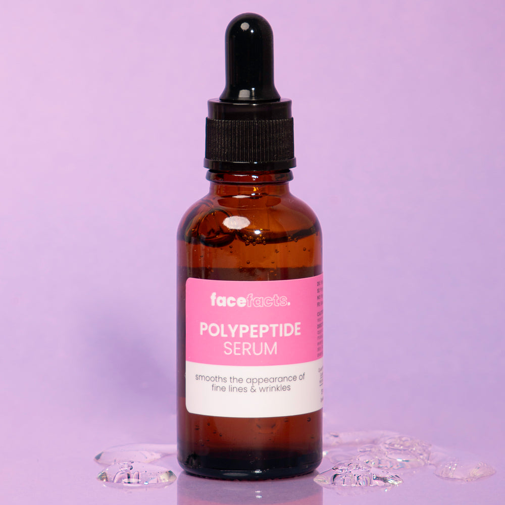 Firm & renew your skin with our Polypeptide Facial Serum. Infused with 3 Peptides, Rice Protein and Lavender Oil, our plumping formula helps improve moisture balance and the appearance of fine lines and wrinkles, promoting a healthier-looking complexion. Apply morning and evening for an extra dewy glow!