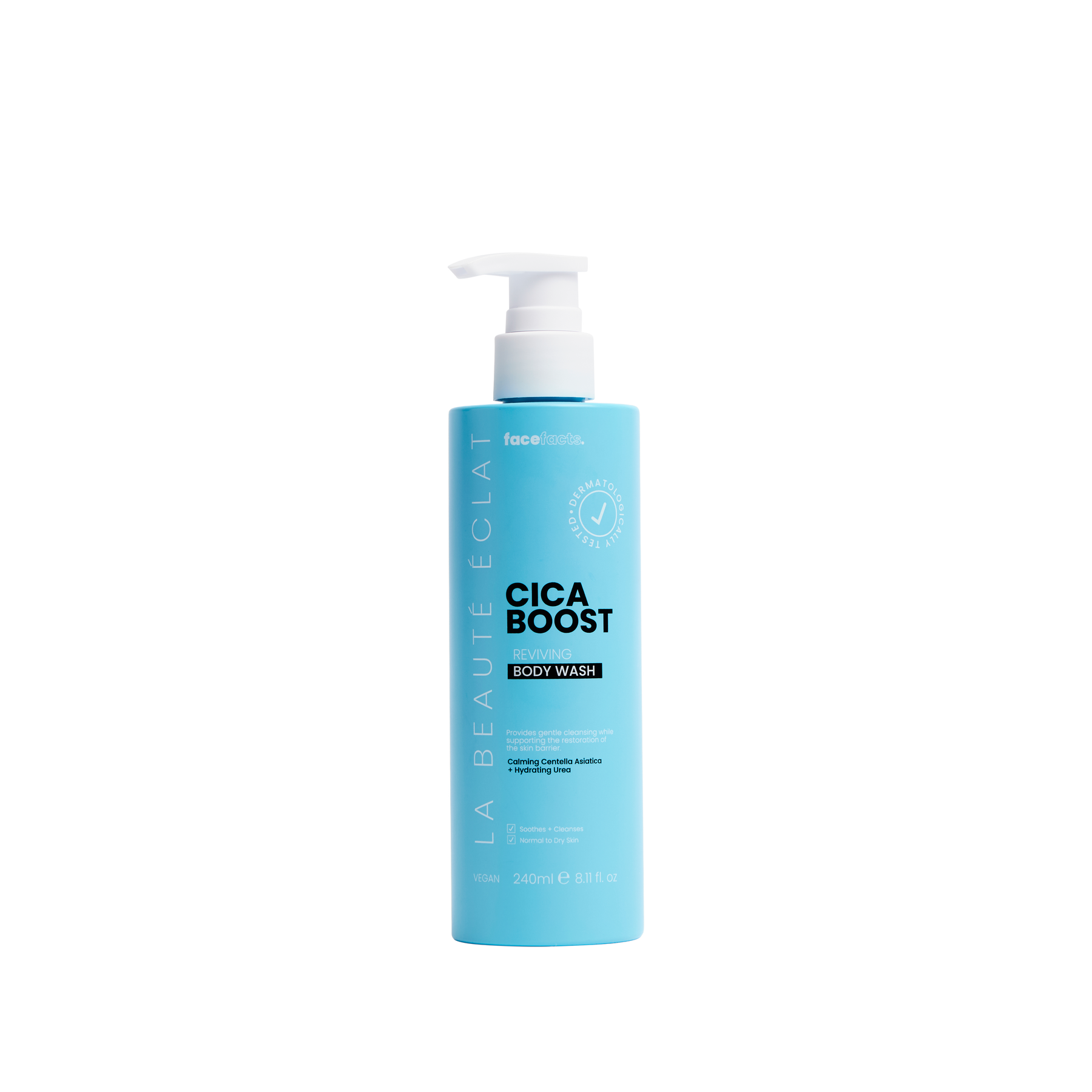 Rejuvenate dry skin with our Cicaboost Reviving Body Wash. Infused with calming centella extract, moisturising panthenol, and hydrating urea, it gently soothes and cleanses while helping to support the restoration of the skin barrier. This leaves the skin feeling refreshed and revitalised with a light aloe vera aroma. Dermatologically tested and vegan friendly.