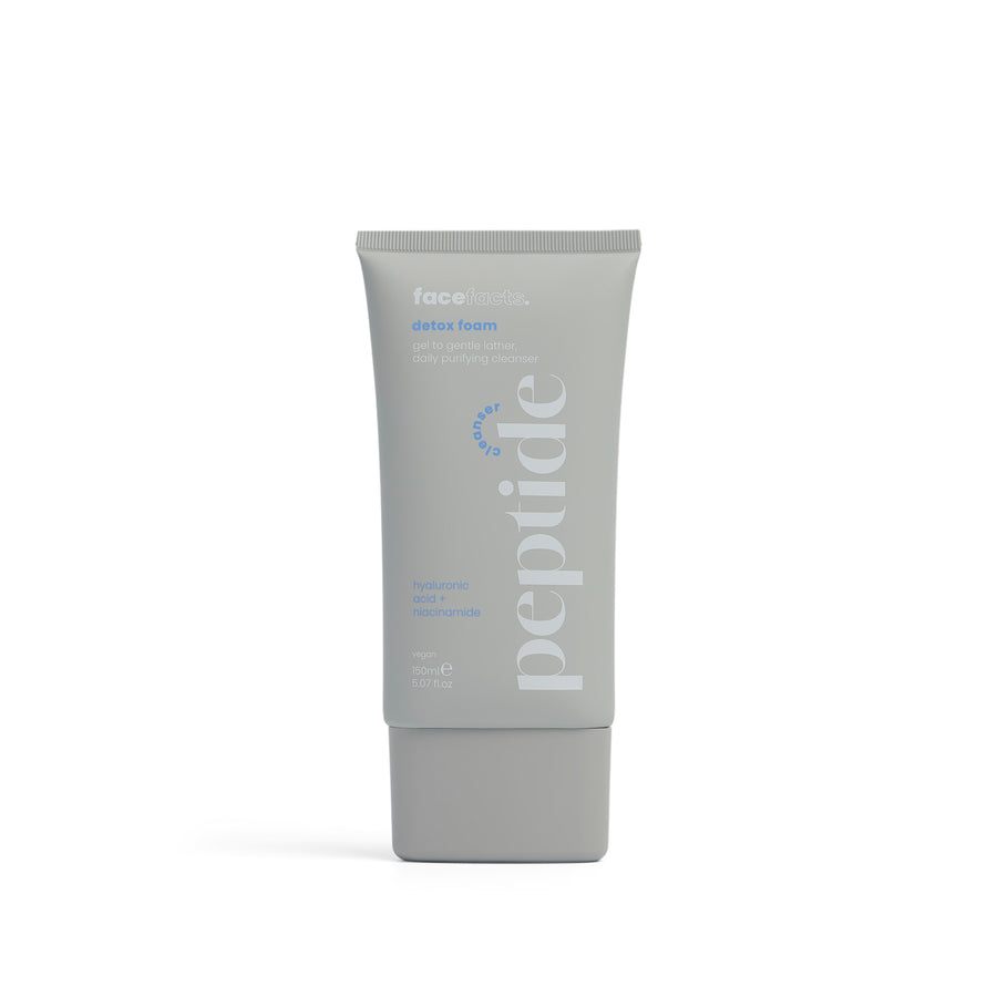 Gently cleanse skin with our Detox Foam. Infused with skin-plumping peptides, hyaluronic acid and niacinamide, our peptide cleansing gel foams when worked into skin to remove impurities for immediate freshness.
