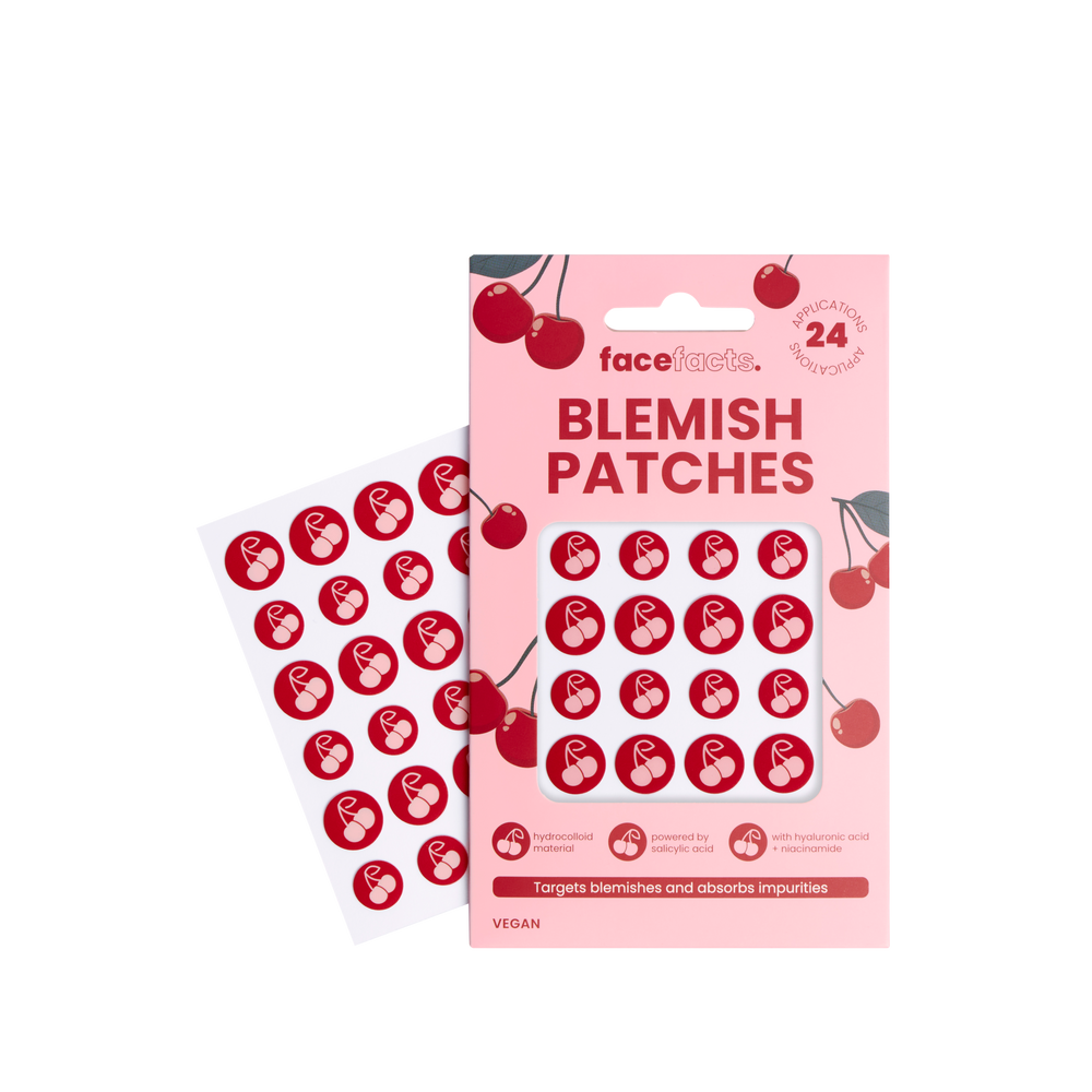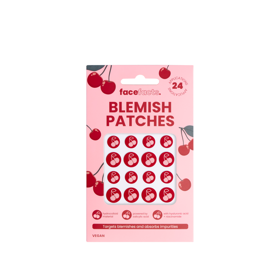 Our Hydrocolloid Blemish Patches are formulated with salicylic acid, hyaluronic acid, and niacinamide to target blemishes by absorbing impurities and protecting against external aggressors, while improving the skin's natural barrier. Our cherry shaped patches prevent spot-picking, helping to reduce the risk of scarring and promote healthier-looking, smoother skin.