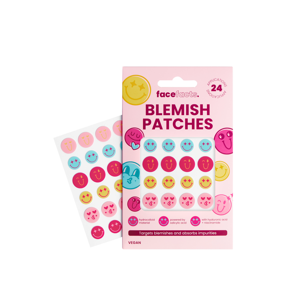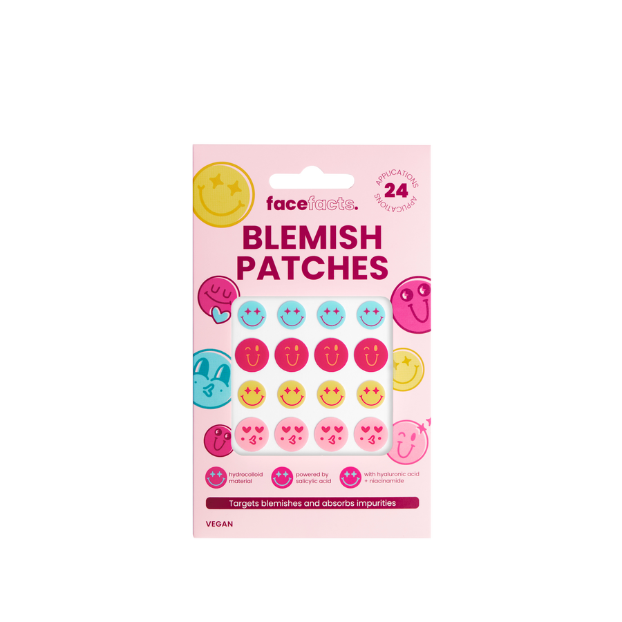 Our Hydrocolloid Blemish Patches are formulated with salicylic acid, hyaluronic acid, and niacinamide to target blemishes by absorbing impurities and protecting against external aggressors, while improving the skin's natural barrier. Our smiley shaped patches prevent spot-picking, helping to reduce the risk of scarring and promote healthier-looking, smoother skin.