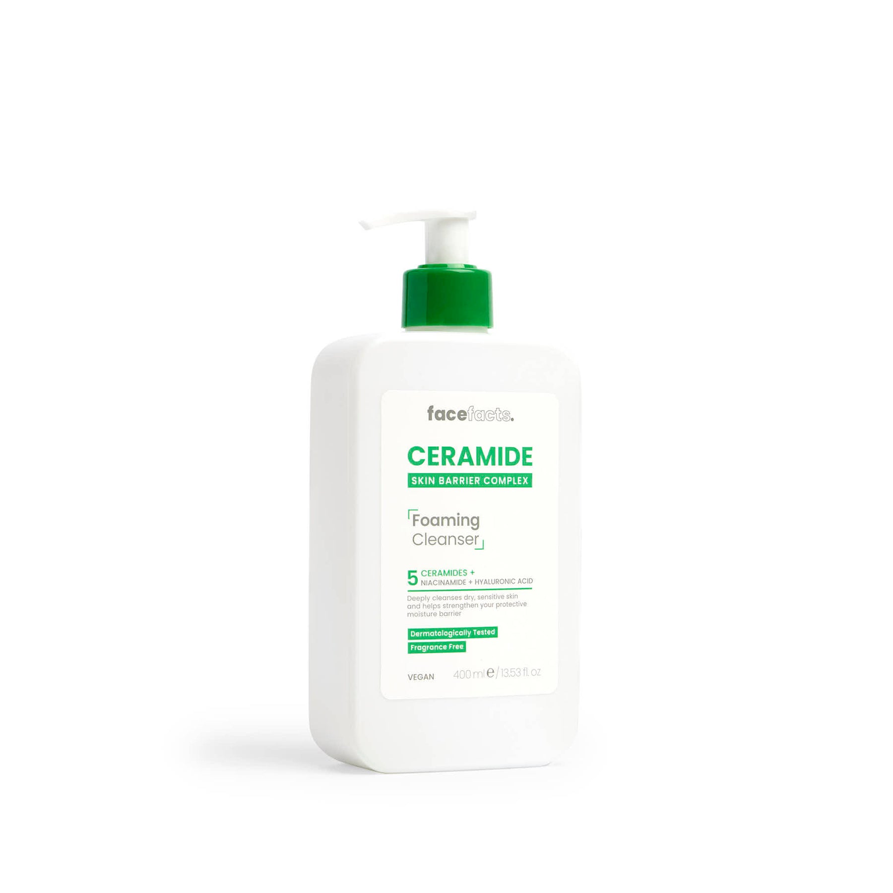 Be kind to your skin with our Ceramide Foaming Cleanser. Our hydrating gel-to-foam formula is dermatologically tested and deeply cleanses dry and sensitive skin whilst helping to strengthen the natural moisture barrier. Infused with our skin barrier complex of 5 ceramides, moisture-locking hyaluronic acid and smoothing niacinamide, this cleanser washes away impurities and makeup, leaving skin clean and hydrated.