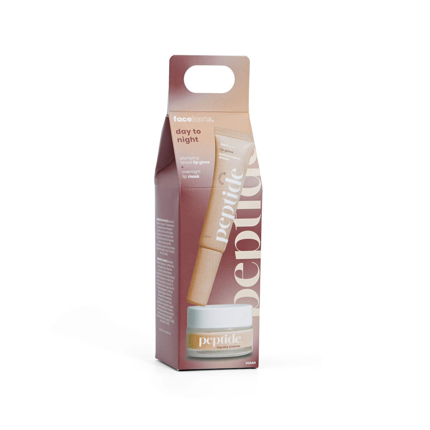 Reveal nourished, smooth lips with our Peptide Day to Night lip revive duo. This peptide-packed, hydrating lip combo includes our plumping lip gloss and restoring overnight lip mask. Our gloss works to add instant volume, shine, and a subtle nude tint, whilst our overnight lip mask will restore and replenish while you sleep.