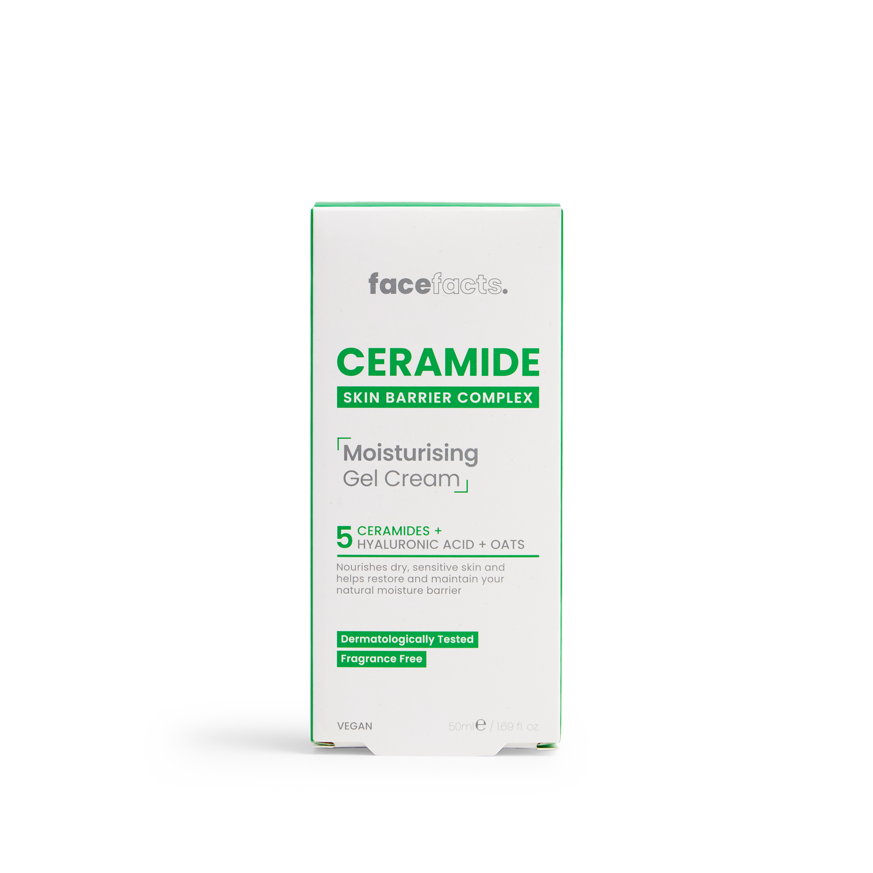 Be kind to your skin with our lightweight Ceramide Moisturising Cream, ideal for sensitive skin. Infused with our skin barrier complex of 5 Ceramides, moisture-locking Hyaluronic Acid, hydrating Vitamin E and skin soothing Oats, our moisturiser helps soothe and strengthen the skin barrier to prevent moisture loss. Give your skin the extra care it deserves!
